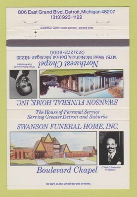 Matchbook Cover Swanson Funeral Home Detroit Mi 40 Strike Ebay